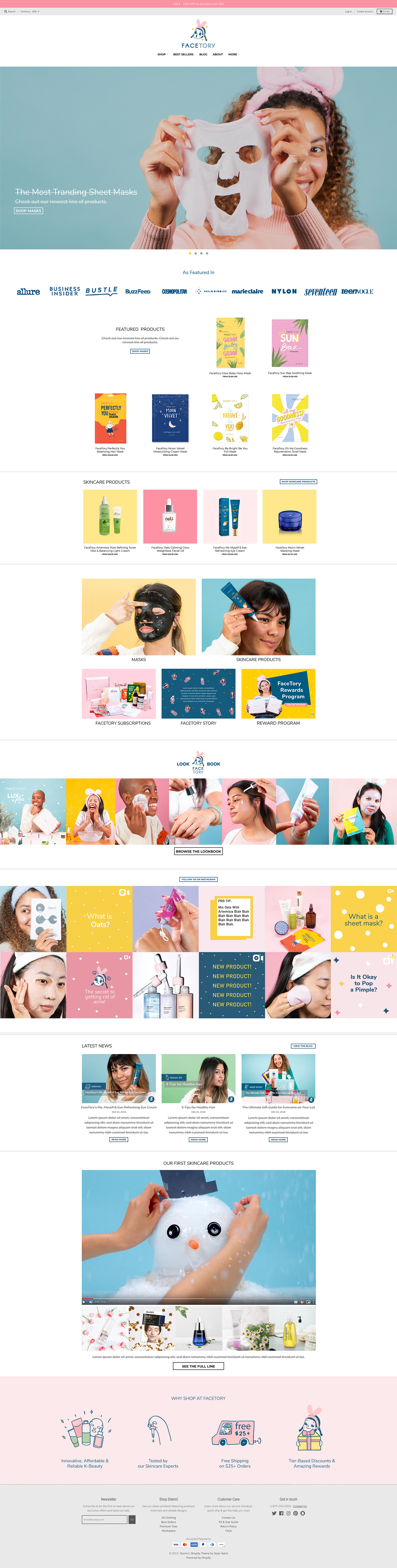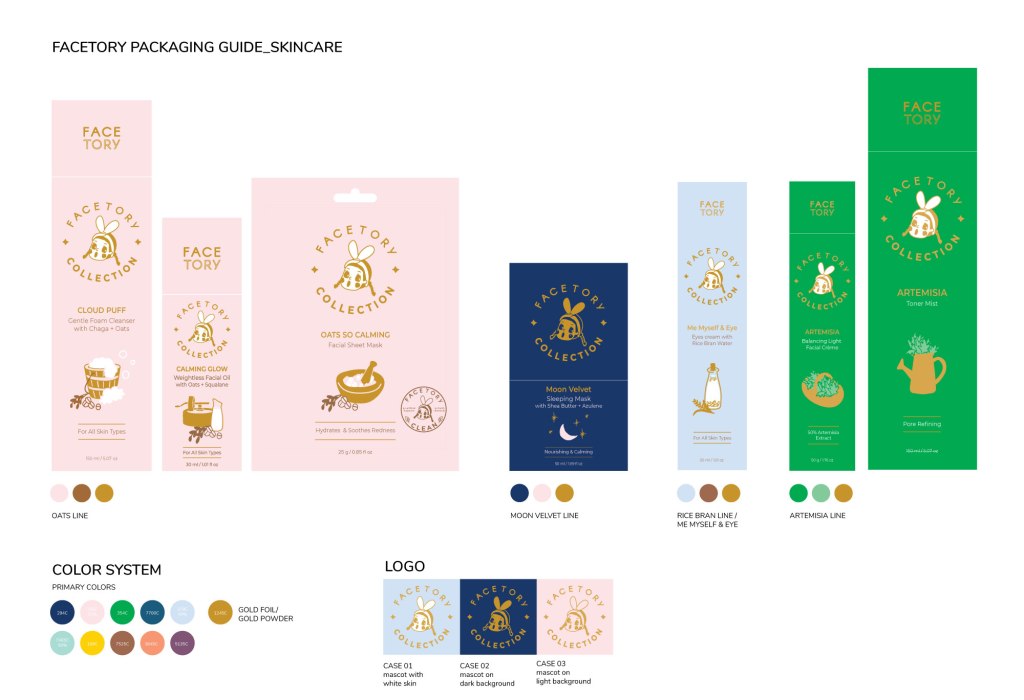 FaceTory is a K-beauty/skincare company targeting genZ and millenials. The whole branding including packaging is based on the following keywords: cute, pastel, girly, illustration, doodle, handwritten & friendly. As the design head, I set up the brand/design system and created unique illustrations and design style.